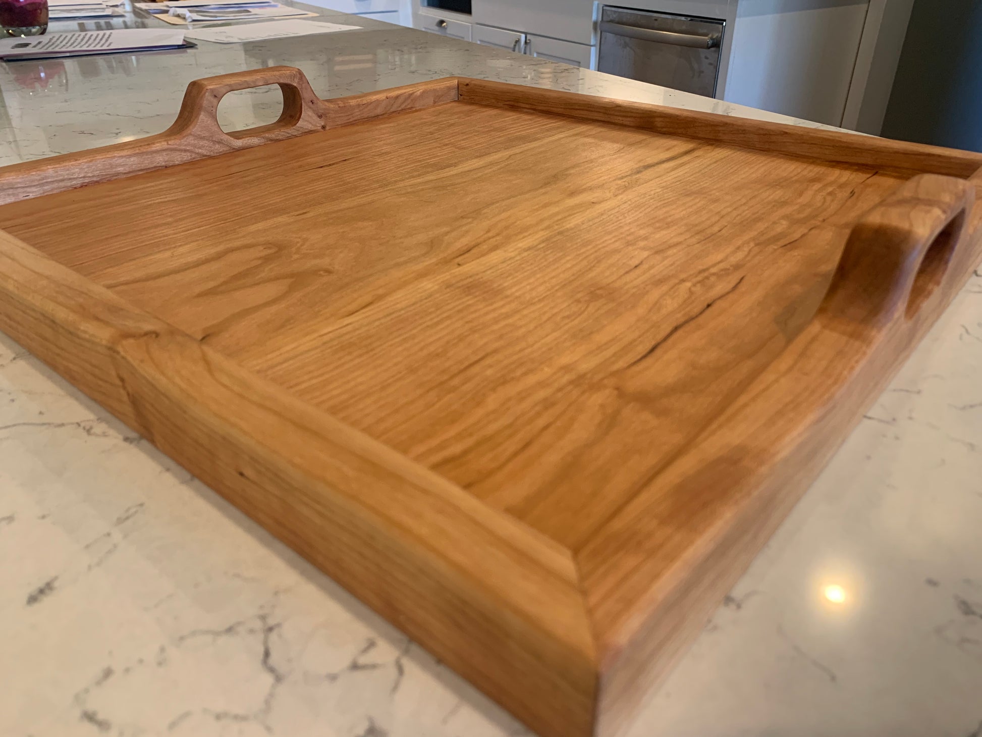 Made from solid 3/4” and 1.25” Cherry wood, sanded smooth and oiled for longevity, here is the perfect tray for all things kitchen, living room, den, serving, charcuterie and more!